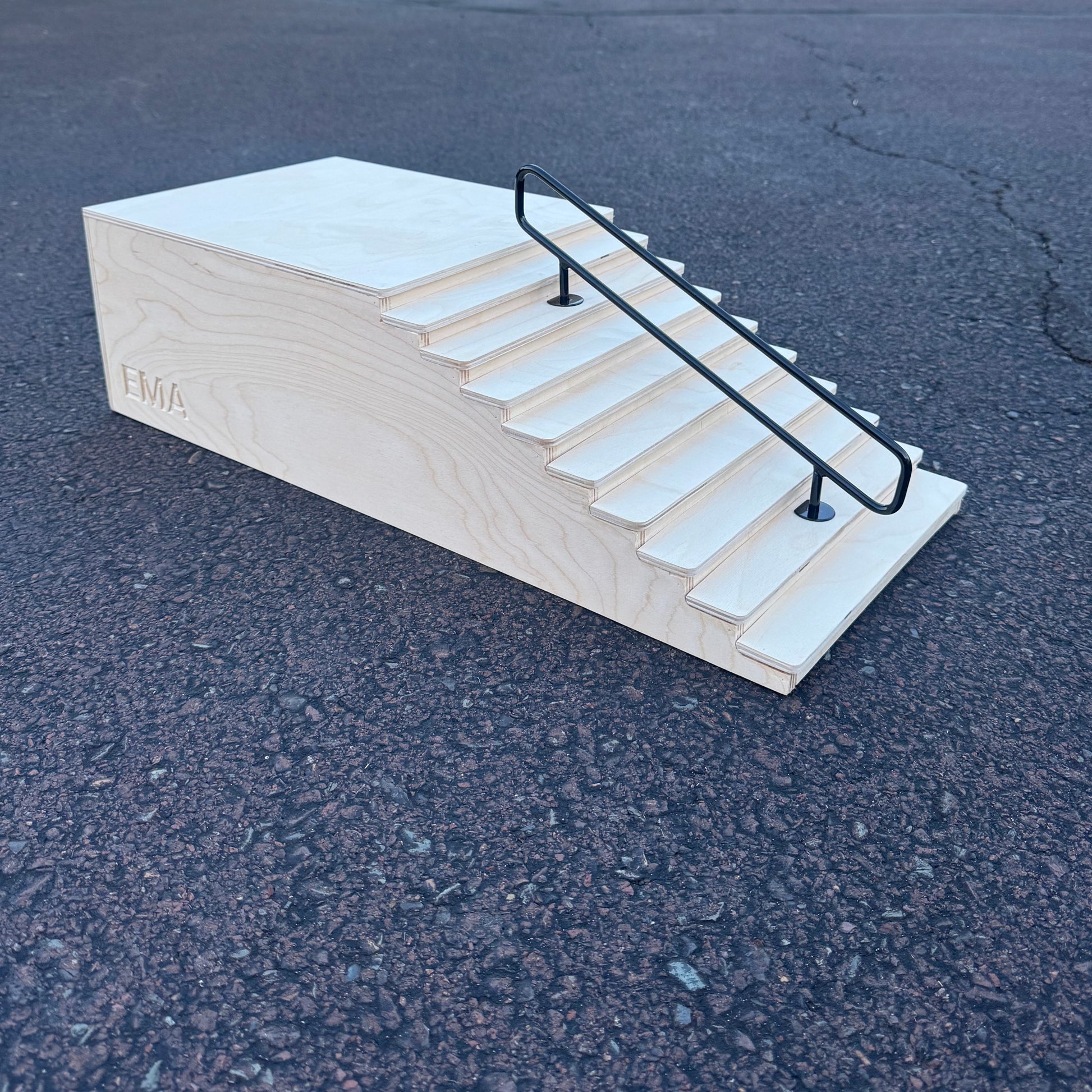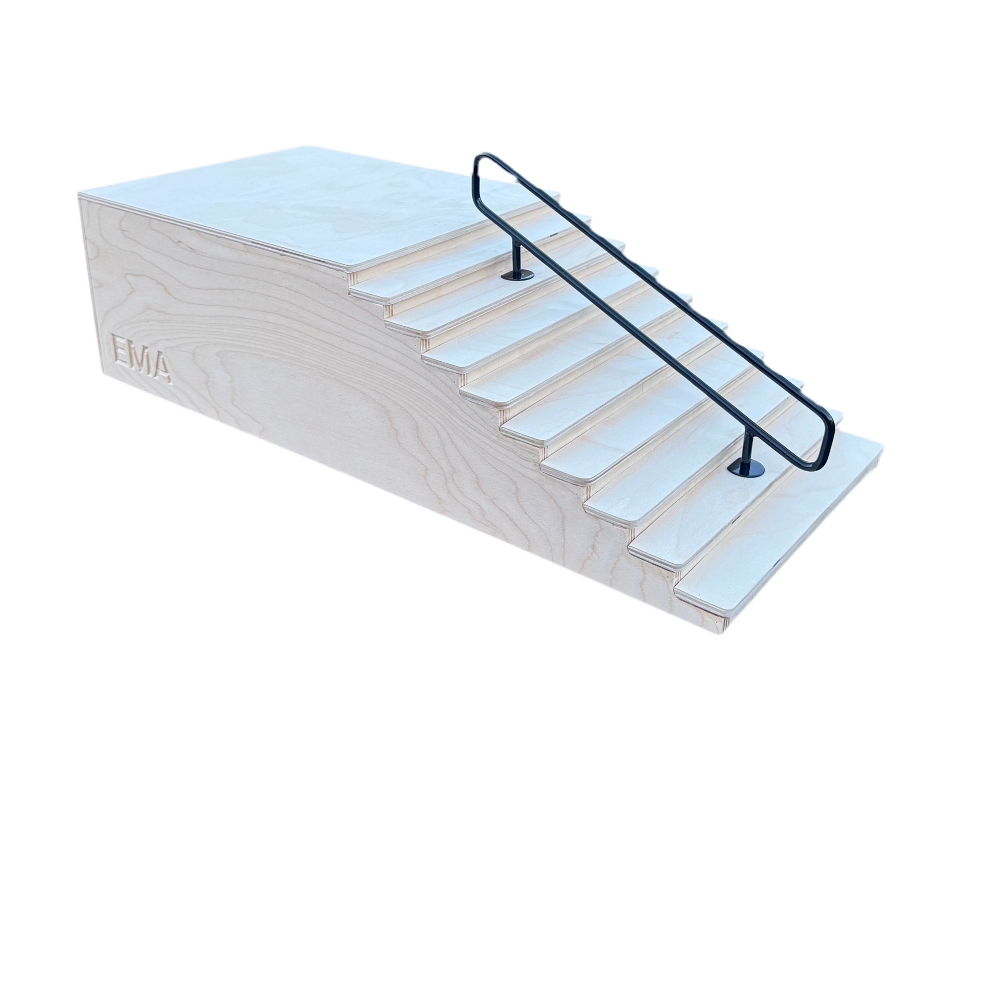 Challenge yourself with the EMA Ramps 10 Step Stair Set, designed for fingerboard enthusiasts. With a removable rail, this set offers endless possibilities for challenging tricks. Improve your skills and take your fingerboarding to the next level.