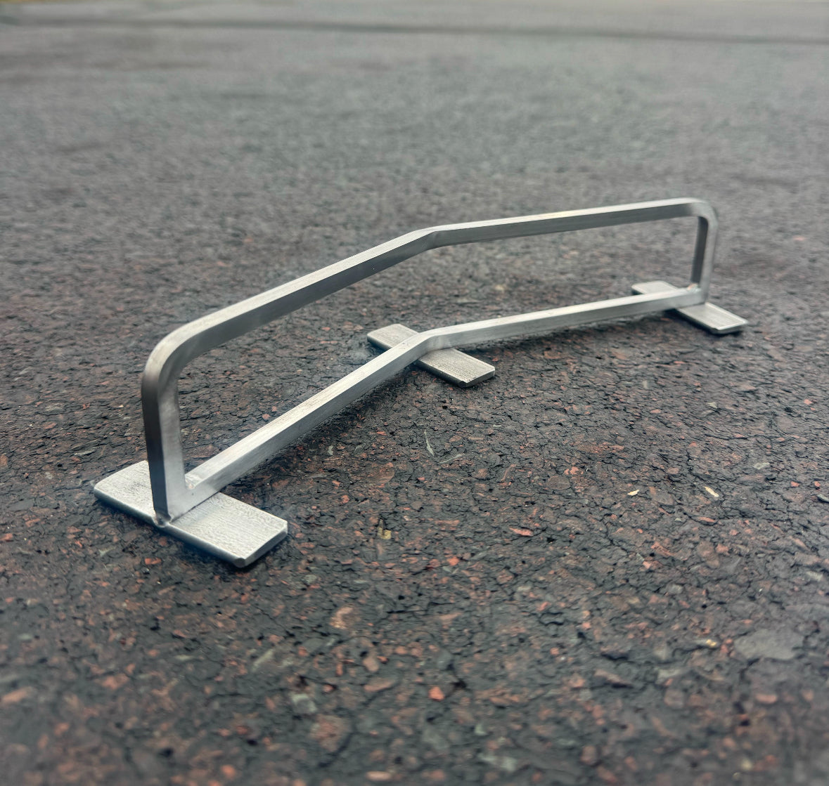 The EMA Ramps Fingerboard Flat Kinked Rail. Its precision-engineered design ensures smooth and consistent performance. Constructed with a kinked shape, this rail allows for versatile tricks and adds a challenge to your grind game. Take your fingerboarding to the next level with this high-quality grind rail. Comes with a powder coat clear finish for protection