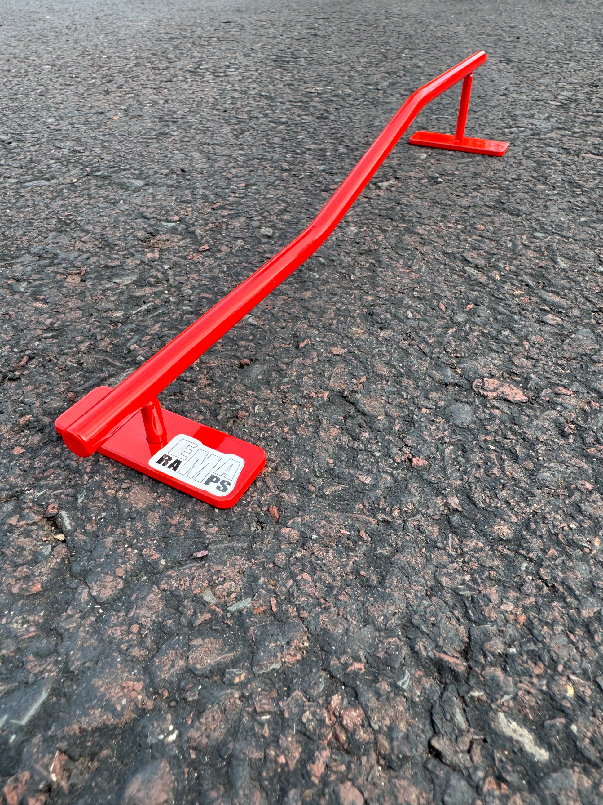 The EMA Ramps Fingerboard Step Down Rail offers a double kinked shape for serious fingerboarders. Perfect your step down grind with this durable rail, designed to withstand the toughest tricks. Upgrade your skills with this essential obstacle