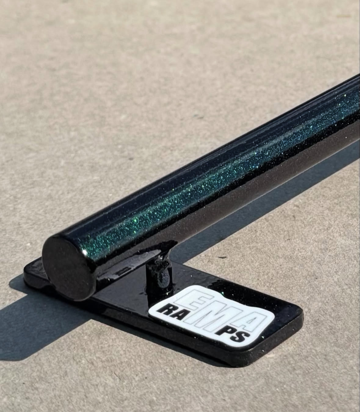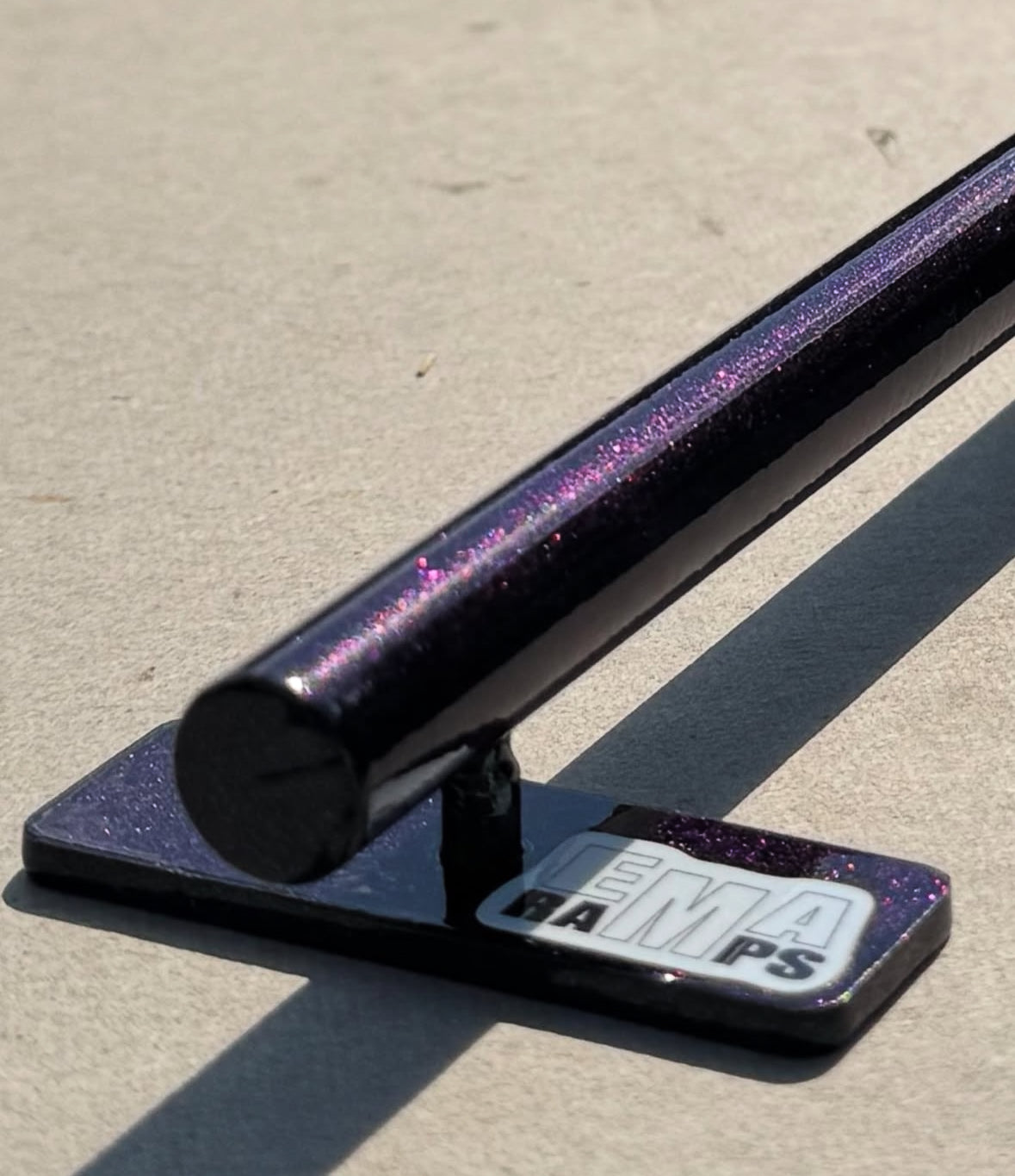 The EMA Ramps Low Boy Rail is expertly made from steel and coated with Joker Jewel, providing a smooth and high gloss finish. Its heavy amount of vibrant, color-shifting metallic flakes offer intense and unique colors, including green, pink, purple, orange, and light-red. Elevate your ramp game with this eye-catching addition.